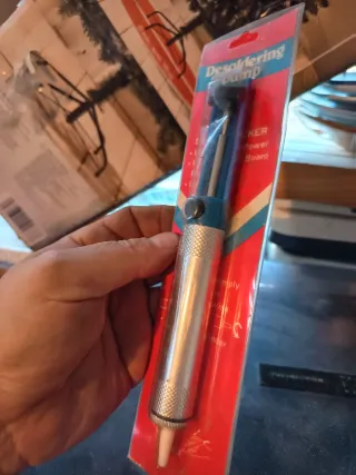 Utensile per dissaldare, ideale per lavori di riparazione elettronica. - Saldatore dissaldatore. - Alta potenza. - Leggero e maneggevole. - Made in Taiwan.