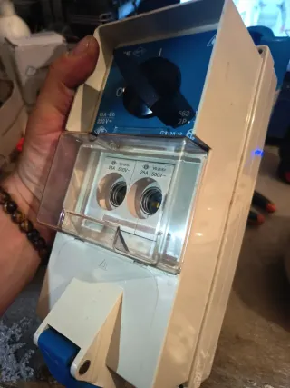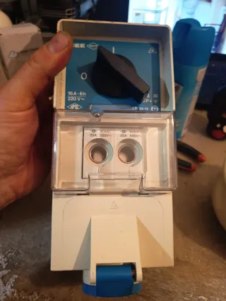 Interruttore industriale CEE con sezionatore. - Modello: 16A-6h 220V~ - Codice: CE 23-12 - Sezionatore a 2 poli + terra - Contatti: 25A 500V~