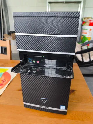 Computer desktop Medion con finitura esterna nera e dettagli argentati. Design verticale compatto. Caratteristiche: Processore: Intel(R) Core(TM) i3-6100 CPU @ 3.70GHz 3.70GHz Memoria RAM: 8192MB Scheda madre: MEDION AKOYA P2233 D/C517 Produttore: Medion Scheda grafica: NVIDIA GeForce GTX 1050 Incluso nel pacchetto: Monitor BenQ GW2470 24" Mouse Logitech G203 Tastiera Logitech K120 (manca una linguetta posteriore per sollevarlo leggermente) Altoparlanti soundbar NGS