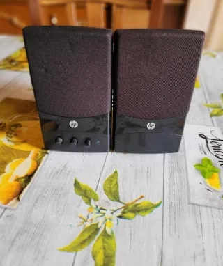 Coppia di altoparlanti per PC HP in ottimo stato. Ideali per migliorare l'audio del tuo computer. - Design compatto ed elegante. - Controlli sul pannello frontale. - Cavo di alimentazione incluso. Spinotto+porta usb.