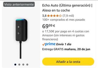 Vendo Alexa Echo Auto per auto, che si connette all'Aux dell'auto, funziona come Alexa e puoi riprodurre tutto il contenuto di Amazon Music e tutta la musica da qualsiasi dispositivo tramite Bluetooth, ideale per le auto che hanno solo un ingresso Aux. costo 65€