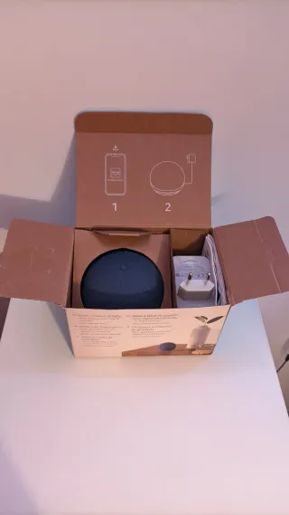 Amazon Echo di quarta generazione in grigio artico. Altoparlante intelligente. Questo è il modello BIG (quello con il suono potente), NON il piccolo Echo Dot (vedi foto per il confronto delle dimensioni). Caratteristiche principali: Suono premium: woofer da 3" e due tweeter. Qualità audio molto più elevata rispetto al Dot. Hub digitale integrato: include il controller Zigbee per configurare direttamente lampadine e sensori intelligenti. Sensore di temperatura: ideale per le routine di riscaldamento. Condizione: Funzionamento perfetto. Include il caricabatterie originale da 30 W. Consegna a mano a Barcellona o spedizione tramite Wallapop