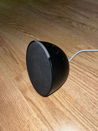 Altoparlante intelligente Amazon Echo Pop di colore nero. Design circolare e compatto. Funziona perfettamente. Si vende per mancanza di utilizzo