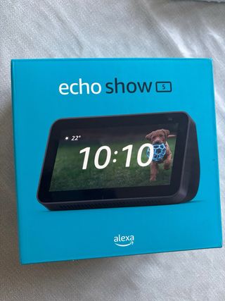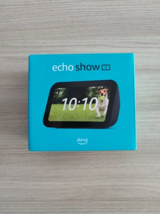 Dispositivo intelligente Amazon Echo Show 5 di ultima generazione. Ideale per la tua casa. - Smart touch screen da 5,5". - Assistente vocale Alexa. - Fotocamera frontale. La scatola è ancora sigillata. È valutato 109,99 su Amazon.