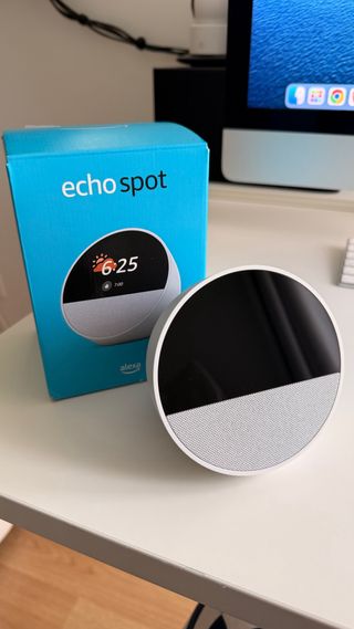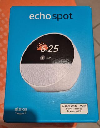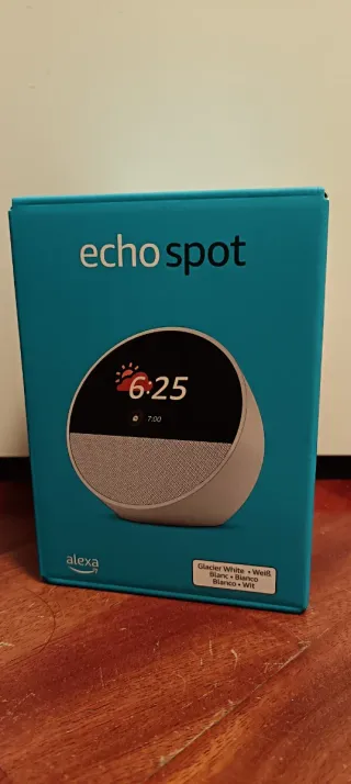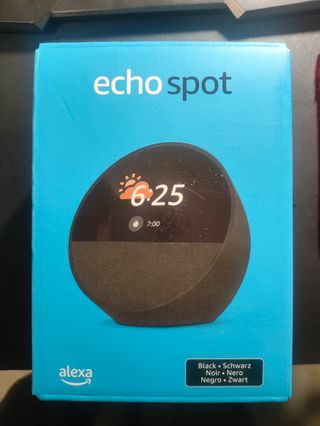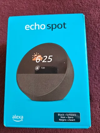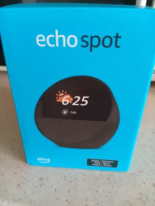 Amazon Echo Spot, nella sua confezione originale. È un dispositivo in perfette condizioni. - Dispositivo intelligente con schermo. - Assistente virtuale Alexa integrato. - Design elegante e compatto.