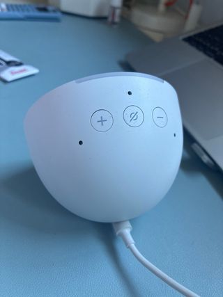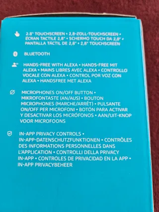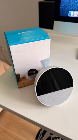 Altoparlante intelligente con schermo circolare. Utilizzato solo per provarlo il giorno dell'arrivo. Niente altro. Design moderno e compatto. Schermo touch. Assistente vocale Alexa integrato.