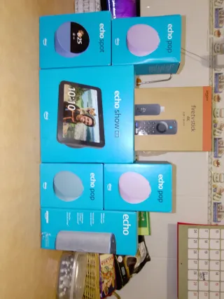 Set di tre altoparlanti intelligenti Amazon Echo. Include due Echo Pop e un Echo Spot. Design compatto e moderno. Il suono è incredibile, ultima generazione di Amazon Echo. Usato leggermente, arriva con tutti gli accessori e le scatole originali. Valore di 200 euro: 100 Spot + 2x50 Pop. ALLARME INTELLIGENTE PERSONALIZZABILE - SUONO POTENTE E INTENSO: Controlla dispositivi di casa intelligente compatibili. Vendita di tutto, prezzo finale.