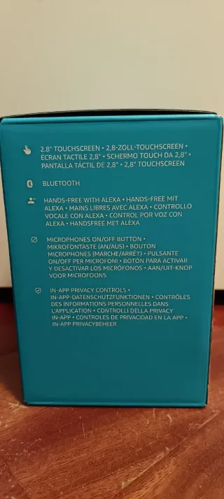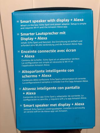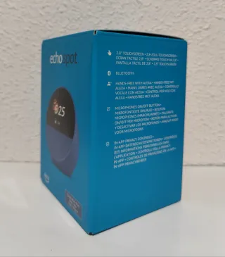 Scatola originale per Amazon Echo Spot. Colore blu. Con il manuale di istruzioni