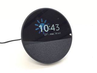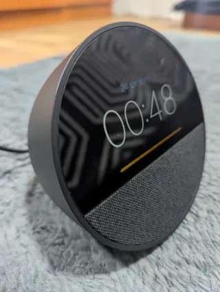 USATO UN GIORNO Sveglia intelligente con suono di qualità e Alexa. - Schermo circolare. - Design moderno. SCATOLA COMPLETA