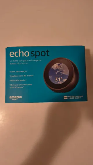 Vendo Amazon Echo Spot, in ottime condizioni. - Altoparlante intelligente compatto e elegante. - Perfetto per la riproduzione musicale e le videochiamate. - Schermo rotondo da 2,5 pollici. Dispositivo introvabile e fuori produzione dopo poco tempo causa bug hardware. Presenta quel leggero sfarfallamento della prima generazione di echo spot che l'ha reso un pezzo unico.