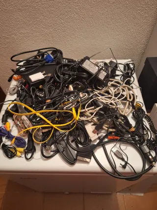 Lott di cavi di alimentazione e adattatori. Include vari tipi di connettori. Adattatore di corrente. Spedizione Wallapop, regalo con custodia del pattino che vedi. Truncato se necessario.