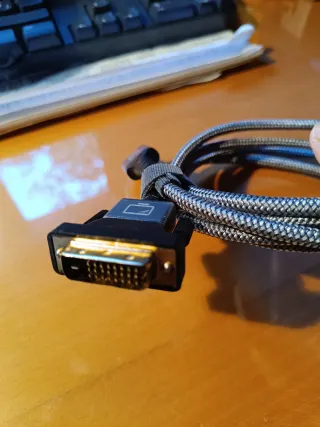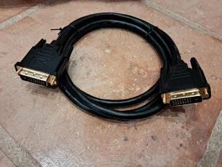 Cavo di connessione per PC con porta DVI. - Connettore DVI bianco. - Cavo nero. Dotato di due connettori DVI digitali (doppio collegamento) e supporta trasmissioni dati ad alta velocità fino a 9,9 Gbps. Compatibile con dispositivi DVI digitali come TV ad alta definizione, lettori Blu-Ray, DVD e altro. Cavo di alta qualità. - Non accetta spedizioni. Barcellona.