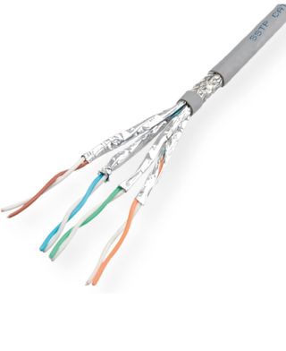 Cavo ROLINE S/FTP-(PiMF-) cat. 7 (classe F) cavo pieno, AWG23, 100 m. Cavo di installazione di rete a filo pieno di categoria 7 per il cablaggio strutturato di edifici Cavo di installazione Twisted Pair Cavi per il cablaggio strutturato di edifici Per l'uso in reti Gigabit Ethernet Cavo a doppia schermatura (PiMF) Impedenza: 100 Ohm 100 metri su bobina 3P certificato Struttura: 8 fili, filo pieno, rame, AWG-23 Schermatura a coppie: Pellicola rivestita in alluminio Schermatura totale: Treccia di rame Tipo di cavo: Fibra di vetro Caratteristica speciale: Senza alogeni Velocità di trasferimento dati: 1000 Megabit al secondo