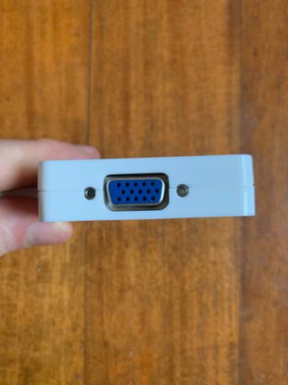 Mini displayport a VGA. Adattatore di connessione Thunderbolt a VGA di Apple. Permette di collegare dispositivi con porta Thunderbolt a schermi o proiettori con ingresso VGA. - Connettore Thunderbolt. - Porta VGA.