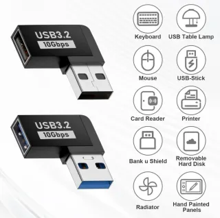 Prezzi: Un adattatore 2,95 Euro Due adattatori 5,40 Euro Tre adattatori 6,90 Euro Pack di tre adattatori USB 3.2 con connessione ad angolo di 90 gradi. - Design compatto e pratico. - Facilita la connessione in spazi ristretti. 3 Pezzi Adattatore Angolo 90° USB 3.2, Adattatore USB Maschio a Femmina, Compatibile con USB 3.0/2.0/1.0, Ricarica Rapida, Connettore USB, per Computer Portatili, Tablet e Altri Dispositivi