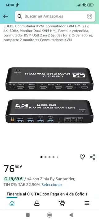 Switch KVM HDMI per controllare 2 computer con un solo monitor, tastiera e mouse. Ideale per ufficio, lavoro da remoto, gaming o uso professionale, con alta qualità dell'immagine e commutazione rapida. Stato: Nuovo. Configurazione: 2 PC/1 monitor. Risoluzione: Fino a 8K a 60Hz e 4K a 120Hz. HDMI 2.1 con supporto HDCP 2.3. USB 3.0 per condividere tastiera, mouse e periferiche. Cambio rapido tra dispositivi tramite pulsante. Perfetto per chi lavora con più computer e vuole mantenere la scrivania ordinata senza perdere prestazioni dell'immagine.