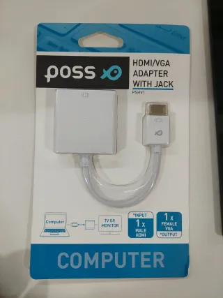 Adattatore del marchio Poss per connettere dispositivi. - Ingresso: 1 x HDMI maschio. - Uscita: 1 x VGA femmina. - Include jack.