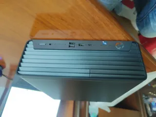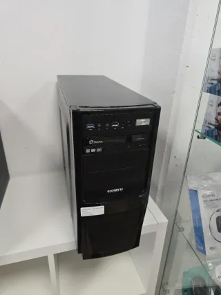 Computer desktop PANAVOX con processore i5 3470, 4 GB di RAM, 500 GB di disco rigido e scheda madre H61. Funziona perfettamente, ideale per attività d'ufficio o gaming di base. - Unità ottica DVD. - Porte USB e audio frontali. - Pulsante di accensione con luce LED blu.