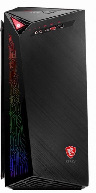 Computer desktop dal design moderno e sorprendente. - Parte anteriore con dettagli rossi. - Logo MSI sulla parte anteriore. - Disco rigido SSD espandibile da 128 GB - Scheda grafica MSI 760 - Micro i5 - Con monitor Samsung da 24" - Tastiera e mouse Logitech