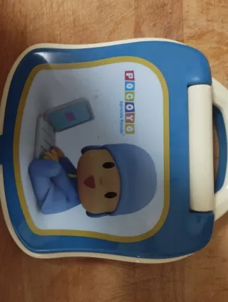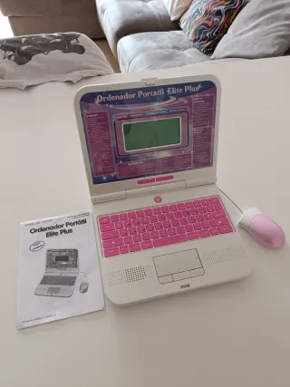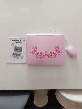 Computer portatile per bambini con un design divertente e decorato con motivi floreali. Include mouse abbinato. Coperchio decorato con fiori rosa.