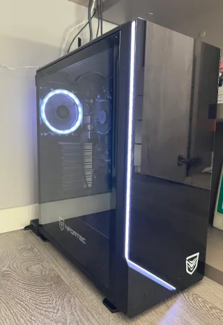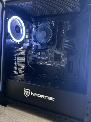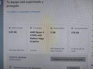 Computer desktop con processore Ryzen 3 2200G e grafica integrata Vega 8 - Scheda madre Asus - Dissipatore CPU con illuminazione LED - Alimentatore NOX URANO 600W con cavi di alimentazione per grafica gaming - SSD Kingston 120GB - Scatola NOX - 8GB RAM DDR4 Kingston Fury - Hard disk 500GB SATA per dati - Windows 10 - Lettore DVD SATA NON VISIBILE NELLA FOTO, ma viene fornito con monitor LED 22", tastiera e mouse Funziona perfettamente