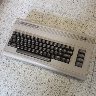 Computer classico Commodore 64 in colore beige. Modello iconico degli anni '80. Non funziona, non include accessori o caricatore.