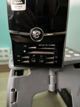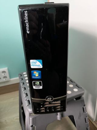 Computer desktop eMachines EL1850 in colore nero. Sistema operativo Windows 10. Scheda grafica NVIDIA GeForce 315 a 2283MB. Adattatore WIFI. DVD-RW. Intel Pentium E5700. HD 640 GB. Memoria 4 GB DD3. Multilettore di schede di memoria. Computer in ottime condizioni, quasi nuovo, con Windows 10, disco analizzato con diskInfo senza problemi. Include anche il pacchetto Office, diversi browser. Solo computer incluso, senza tastiera, mouse o schermo. Perfetto per Kodi, Plex.