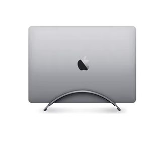 Supporto verticale in alluminio per computer portatili. Include varie gomme per adattarsi a diverse dimensioni. Lo chassis in alluminio è resistente e stabile.