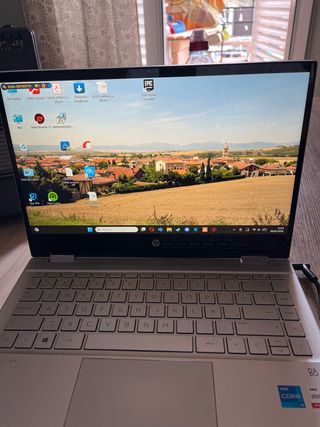 Computer portatile HP in colore argento. - Schermo da 14 pollici. - Processore Intel Core i5. - Grafica Intel Iris Xe. - Tastiera retroilluminata.