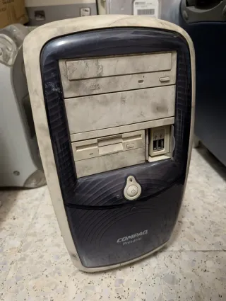 Carcasa per computer desktop Compaq. Design moderno e compatto. Pannello frontale con slot di espansione.