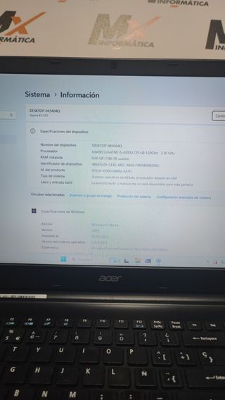 Portátil Acer 15.6 W11 8GB RAM 240GB SSD
