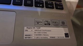 Portátil Acer Aspire V5 - Schermo touch da 11,6 pollici. - Processore AMD A4 - 4GB di memoria RAM. - Hard disk da 500GB. - Sistema operativo Windows 8. La batteria non funziona. Caricatore non incluso.