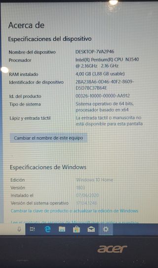 Portátil Acer Aspire. Configurato e aggiornato di recente. Dotato di Windows 11 (25H2), Office 365, Antivirus... Funziona perfettamente, senza alcun problema. Caratteristiche: Processore Intel Core i3-4005, Memoria RAM 8gb, SSD da 480 gb, USB, Wi-Fi Dual Band, HDMI, Bluetooth... Batteria e caricabatterie originali.