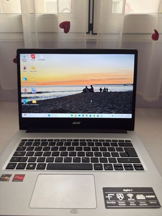 Portátil Acer Aspire 3 in color argento e nero. Un dispositivo versatile per l'uso quotidiano. Usato ma in buone condizioni grazie alla cura e all'uso quasi quotidiano per un breve periodo. Utilizzato quotidianamente per l'università. Piccoli segni sul corpo. Funzionamento perfetto. Archiviazione 256 GB. Acquistato nell'aprile 2022. Conservo la ricevuta di acquisto come garanzia. Memoria RAM 8GB. Processore AMD Ryzen 3. Include caricabatterie. Ho terminato l'università e non ho più bisogno di un portatile con queste caratteristiche, motivo della vendita.