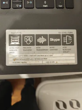 Portatile Acer Aspire E5-475 in colore nero. - Intel i5-6200U - Ram: 8Gb - SSD NVME - 128Gb - HDD: 512Gb - Schermo da 14 pollici. - Tastiera QWERTY spagnola. - Touchpad integrato. - Batteria al 100% - Caricatore - Windows 11 - Microsoft Office - Borsa