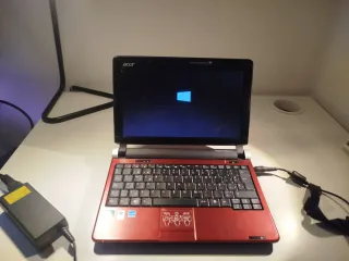 Netbook Acer Aspire One con schermo da 10.1 pollici. Ideale per compiti di base e portabilità. - Schermo LED. - Webcam integrata. - Design compatto e leggero. - 1Gb di RAM e 140Gb di disco rigido. - S.O. originale Windows XP. - Senza caricabatterie. - Include custodia Targus. - Le immagini fanno parte della descrizione.