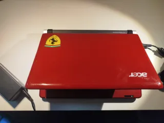 Elegante netbook Acer Aspire D250 in colore rosso Ferrari. Display da 10,1 pollici. Design compatto e leggero. Il formato richiede una password.