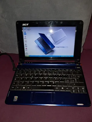 Portatile Acer Aspire One in colore blu. Richiede formattazione. - Schermo da 10 pollici. - Processore Intel Atom. - 1GB di RAM. - Hard disk da 160GB. - Sistema operativo Windows 7 Starter (preinstallato). - Porte USB, VGA, lettore di schede SD. - Caricabatterie incluso.