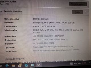 Vendo portatile Acer Aspire 7750G. Portatile con schermo panoramico da 17", processore Intel Core i5 2430M a 2,40GHz, 4Gb di RAM, 320Gb di disco con Windows 11 e Microsoft Office 365. Dotato di WiFi, webcam, lettore DVD, lettore SD, 3 porte USB (una 3.0), uscita HDMI e VGA, tastierino numerico. Batteria con durata circa 40 minuti. Incluso caricabatterie. Usato, con segni d'uso, ma in buone condizioni. Spedizione disponibile.