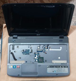 Vendo Notebook Acer Aspire 5738/5338 M52264 nelle seguenti condizioni: Manca la tastiera e l'alimentatore per cui non ho modo di provarlo. Per questo si vende esclusivamente come parti di ricambio e senza alcun tipo di garanzia. Monta HD da 500GB, 512MB ram, CPU Intel T6600 e masterizzatore DVD. Batteria inclusa. Inclusa la Key originale Windows 7 Home Premium