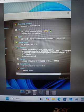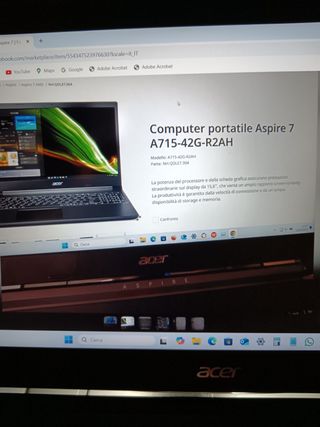Acer aspire 7 notebook con 8gb di ram, 512gb di ssd e cpu ryzen 5 5500u, scheda video gtx 1650 4gb. Insieme al pc fornisco: scatola e manualistica, alimentatore