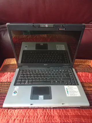 Portátil Acer Aspire 5610 in color argento e nero. - Schermo da 15,4 pollici. - Processore Intel. - Sistema operativo Windows 7 Ultimate. - Lettore CD/DVD. - Webcam integrata. - Batteria non carica.