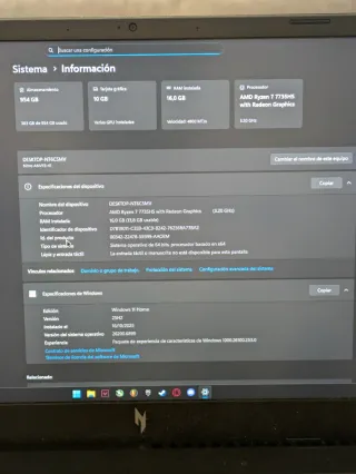 Computer portatile da gioco Acer Nitro 16 — RTX 4070 Vendo un laptop da gioco ad alte prestazioni acquistato 1 mese fa. Caratteristiche principali: Windows 11 Pro Processore AMD Ryzen 7 7735HS Grafica Nvidia GeForce RTX 4070 (8 GB) Display WQXGA da 16" (2560x1600), 165 Hz 16 GB di RAM DDR5 SSD DA 1 TB Wi-Fi 6E, Bluetooth 5.3 Tastiera retroilluminata in spagnolo Sistema di raffreddamento ottimizzato Peso: 2,7 kg Include: Scatola originale caricabatterie Garanzia ufficiale di 3 anni (El Corte Inglés) Condizioni impeccabili, può essere visto e provato