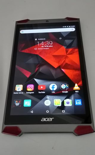 Tablet Acer Predator GT-810 uscito in vendita nel 2015 al prezzo di 350€. Display IPS TFT da 8 pollici con risoluzione FullHD (1920 x 1080). Processore Intel Atom x7-Z8700. Memoria RAM da 2GB. Capacità di archiviazione di 32GB espansibile tramite scheda SD. Android 5.1 Lollipop. WiFi 802.11n. Dispone di grafica Intel HD Graphics Gen 8. Fotocamera posteriore da 5 Mpx e anteriore da 2 Mpx. Batteria Li-Ion 4420 mAh. Dimensioni 21,8x12,7x8,7cm. Peso 350g. Utilizzato pochissimo e sempre conservato nella sua scatola, funziona perfettamente, senza segni di utilizzo, graffi o urti, e lo schermo è perfetto. Accetto Wallapop.