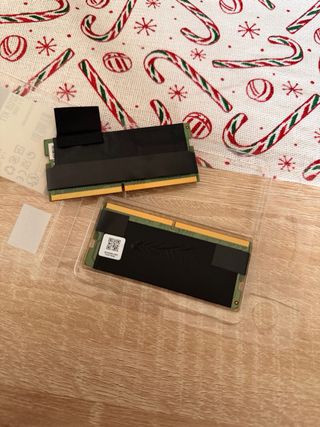 Due moduli di memoria RAM DDR5 da 8GB ciascuno. Completamente nuovi, solo un mese di utilizzo poiché li ho sostituiti nel mio portatile appena acquistato. Provengono da un Acer Predator Helios Neo 16 PHN16-71, non conosco esattamente la marca.