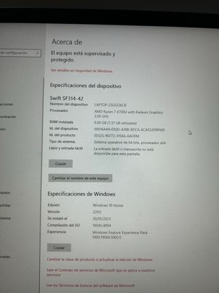Vendo splendido Acer Swift X, in ottime condizioni. Modello: Sfx14-41g Pc portatile per uso ufficio o gaming leggero - Windows 11 64-bit - Processore AMD Ryzen 7 5700U Octa-core 2,10 GHz base con processo produttivo a 7nm quindi non consuma tanto - Dimensioni 35,6 cm (14") Full HD (1920 x 1080) 16:9 IPS - 8 GB, LPDDR4X - 512 GB ssd estendibile c'é lo slot per la seconda ssd - Scheda video NVIDIA GeForce GTX 1650 con 4 GB di memoria dedicata + scheda grafica integrata Amd Radeon - Batteria da 58.28wh con un po di usura alle spalle da cambiare poiché dopo un po che sta ferma si scarica Mancano due viti una sostituita una ancora no