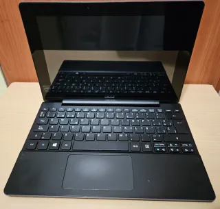 Portátil Acer Swift 3 in finitura nera e argentata. Diventa tablet scollegando la tastiera. Tutto funziona correttamente. Senza caricatore (si ricarica con porta microUSB). Specifiche: Processore: Intel Atom Z3735F, Schermo: 11'' (touchscreen), RAM: 2GB, Lettore di schede Micro SD, Disco rigido: SSD 64GB, Wifi, Bluetooth, Fotocamera integrata, Sistema operativo: Windows 10, Batteria: durata 3-4 ore a seconda dell'uso.
