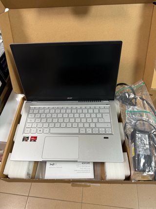 Computer portatile Acer Swift 3 in buone condizioni. - Design elegante e leggero. - Buona qualità dello schermo da 14" - 1,4 kg - Rifinito in colore argento. - 8 GB di RAM (estesa) - Disco rigido SSD da 224 GB (sostituzione dell'originale) - Batteria appena sostituita. 3-4 ore di utilizzo senza problemi - Caricatore originale - Viene fornito con Windows 11 non attivato IMPORTANTE: c'è un difetto nell'ancoraggio sinistro dello schermo. Quando lo apri o lo chiudi cede un po', dovendo tenerlo con le dita per non forzarlo. Non è dovuto a un colpo, ma perché la parte interna in cui è ancorato lo schermo ha ceduto. Per il resto, il laptop è perfetto e funziona benissimo