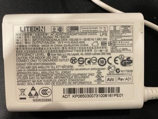 Caricabatterie Liteon da 45W. - Modello: PA-145 - Ingresso: 100-240V ~ 1.2A - Uscita: 19V ~ 2.37A - Prodotto in Cina.