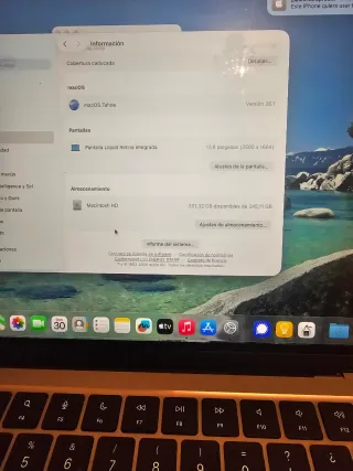 MacBook Pro Chip M2 13 pollici, modello 2022. 256Gb/8Gb. Come nuovo, 200 cicli di carica. Con la sua scatola, caricabatterie e fattura, ancora in garanzia. Ha delle ombre sul coperchio rimaste dopo aver rimosso delle adesivi. Immagino che con un tipo di prodotto si possano rimuovere. Senza alcun tipo di sfregamento o abrasione.